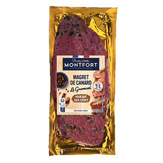 Dégustez un magret de canard Origine France sublimé par une délicieuse marinade aux cèpes. Un plaisir gourmand prêt en seulement 12 minutes à la poêle. Existe aussi en version piment d’Espelette, herbes de Provence et fleur de sel.