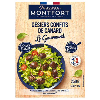 Des gésiers de canard préparés selon une recette traditionnelle, parfaits pour vos salades. Canards certifiés Origine France et nourris sans OGM (<0,9%).