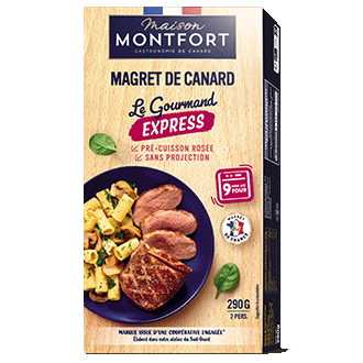Retrouvez tout le plaisir du plat préféré des Français. Dégustez ce magret tendre et savoureux, avec une cuisson garantie sans projection, en seulement 9 minutes au four ou 2 minutes au micro-ondes.