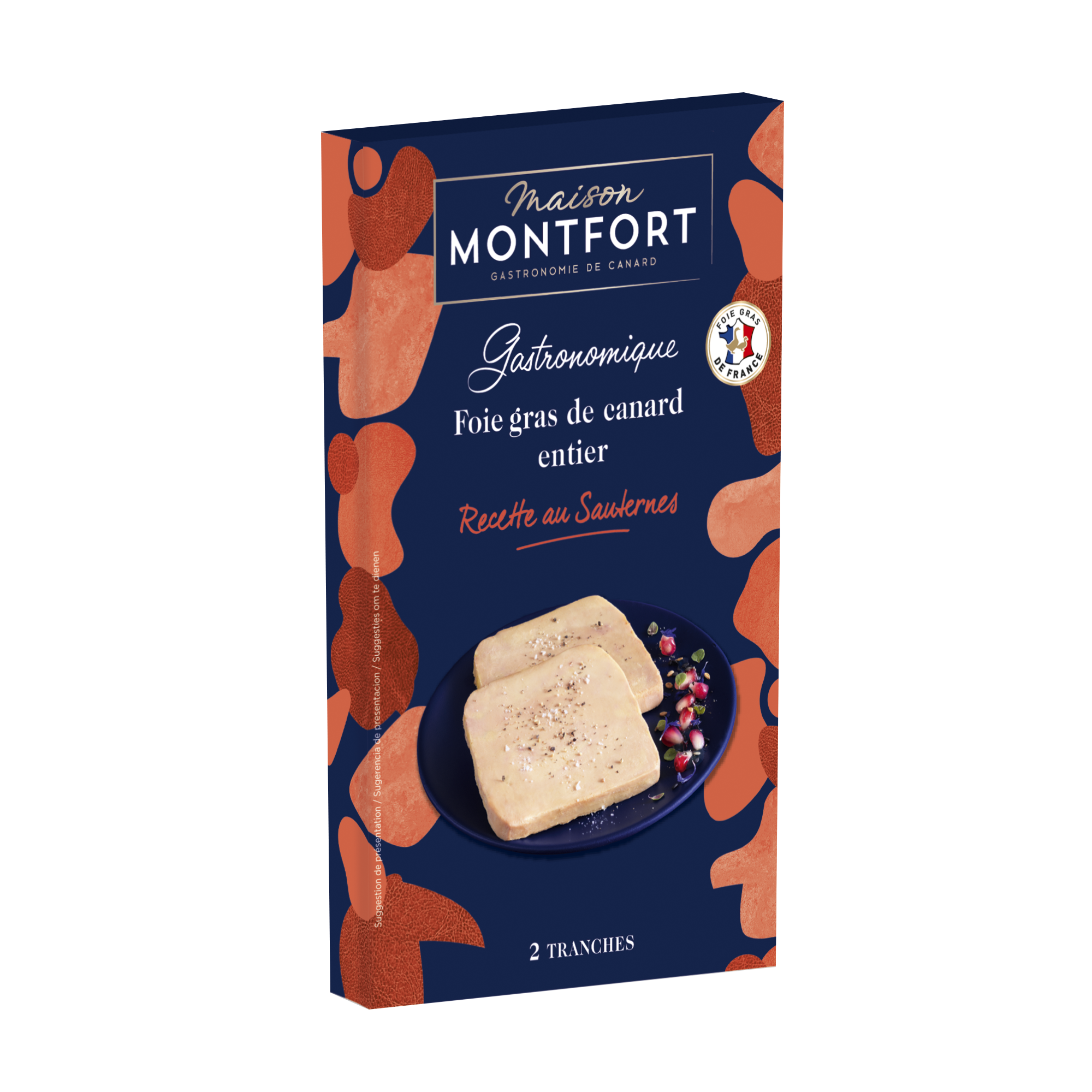 Maison Montfort présente son foie gras Gastronomique au Sauternes. Un foie gras de canard entier à la texture fondante avec des notes fruitées. Fruit d’une confection rigoureuse, Maison Montfort s’engage à vous offrir le meilleur du foie gras pour un moment de plaisir et convivialité.