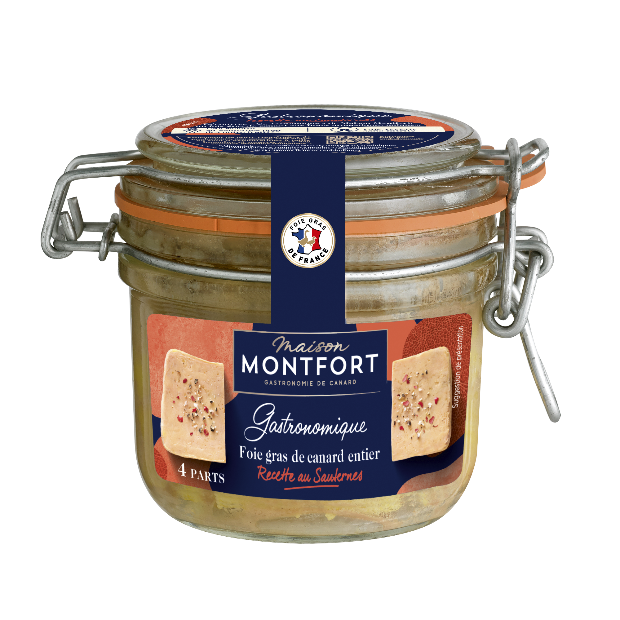 Foie gras de canard (origine France), Sauternes 1,9%, sel, poivre blanc, poivre timut 0,04%, curcuma, gingembre