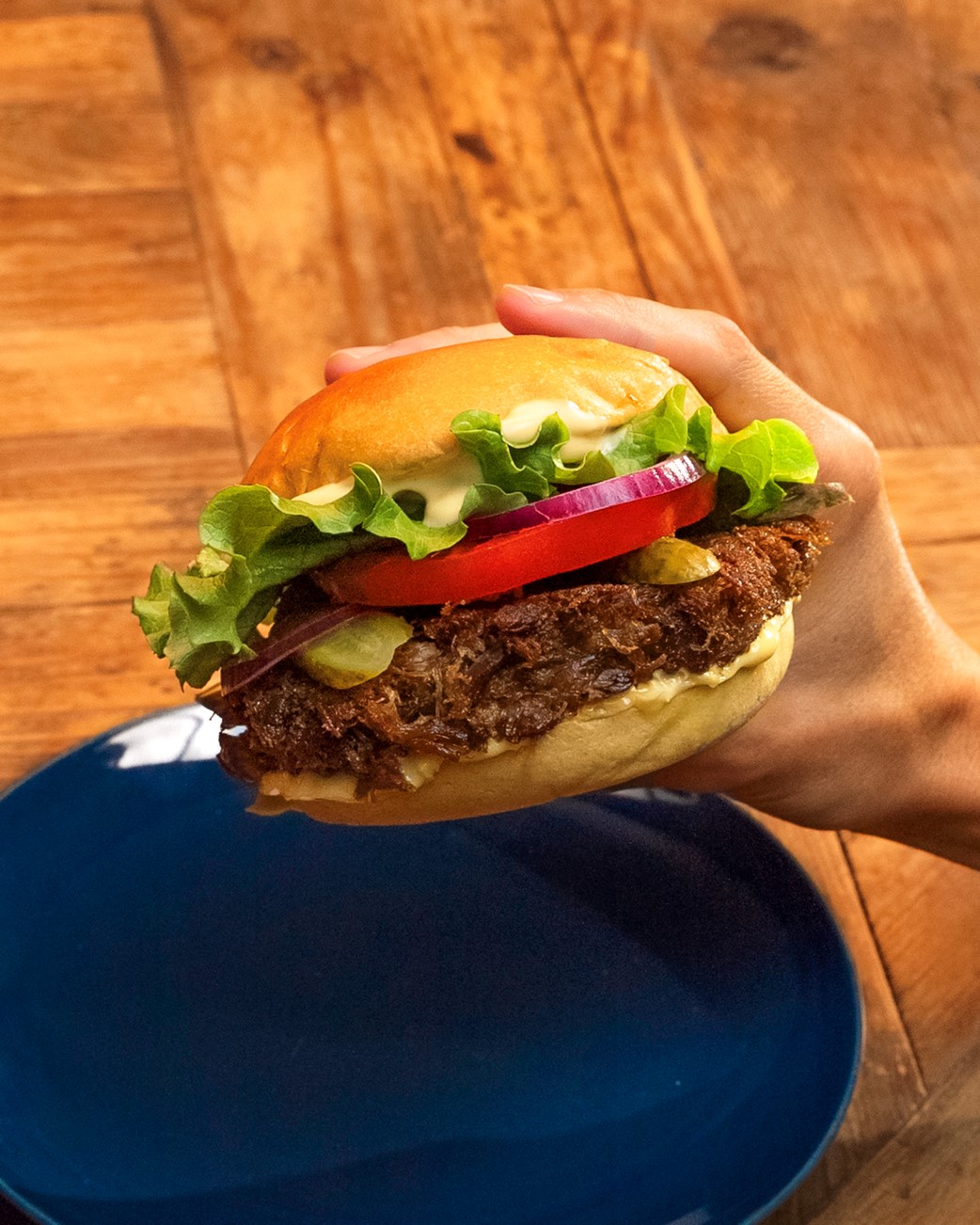 7.  C’est bientôt prêt ! Terminez en plaçant la partie supérieure du pain à burger.
