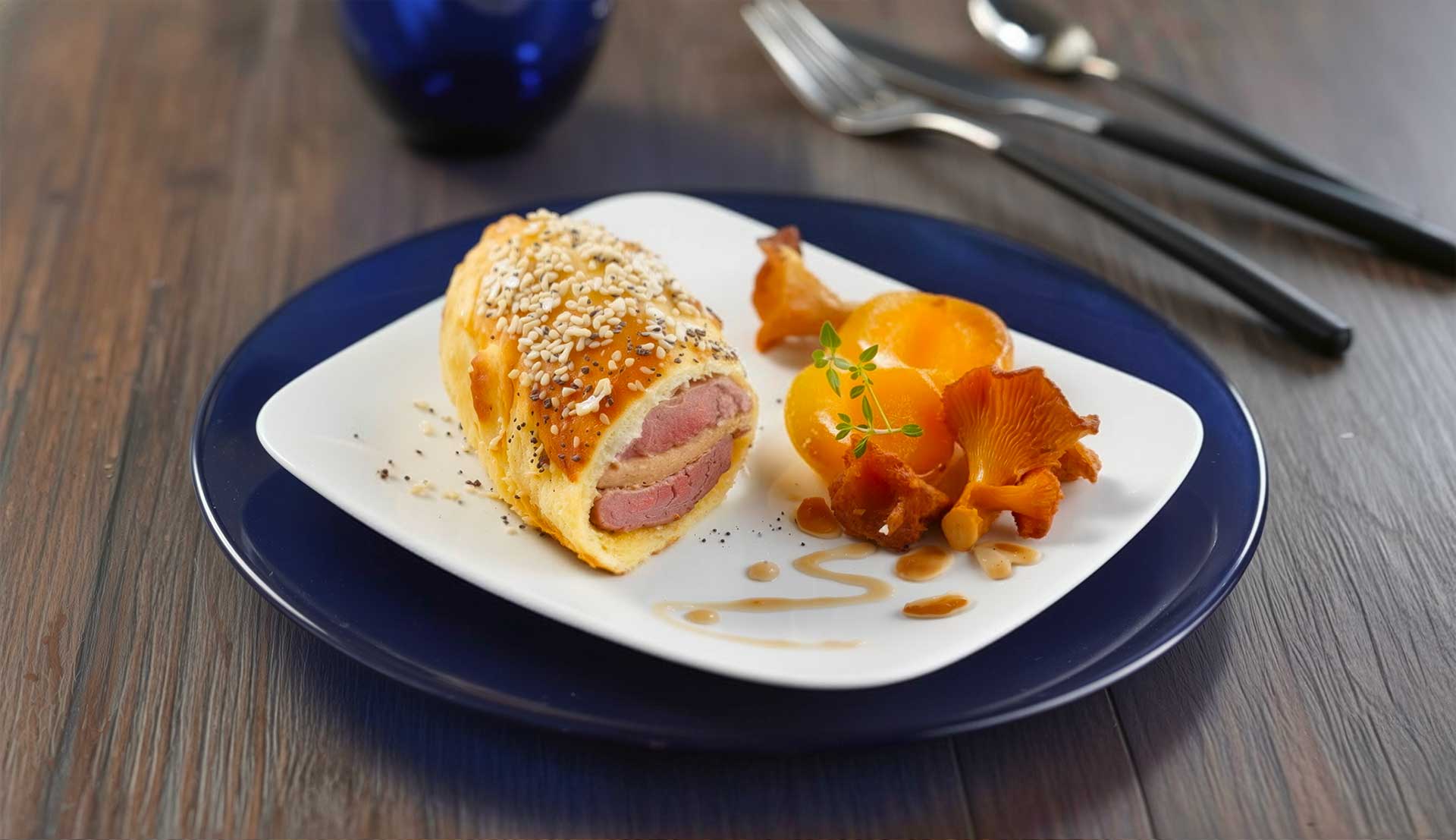 8. Disposer au centre le magret farci et l’enrober avec la pâte puis fermer les extrémités. Enfin, sectionner le surplus de pâte des extrémités.
