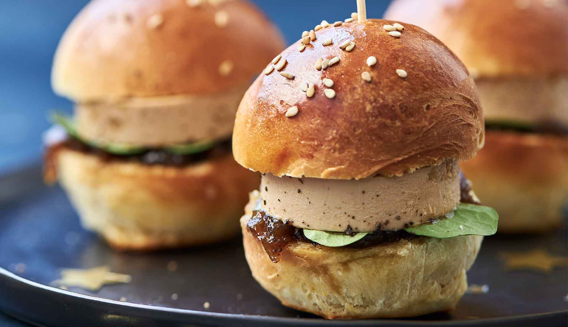 14. Etalez une cuillère à café de chutney sur chaque base, ajoutez quelques feuilles de mâche puis déposez une tranche de foie gras coupée à l’emporte-pièce.