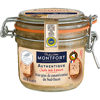 • 200g - 250g de foie gras de canard entier, finement salé et poivré Excellence Maison Montfort