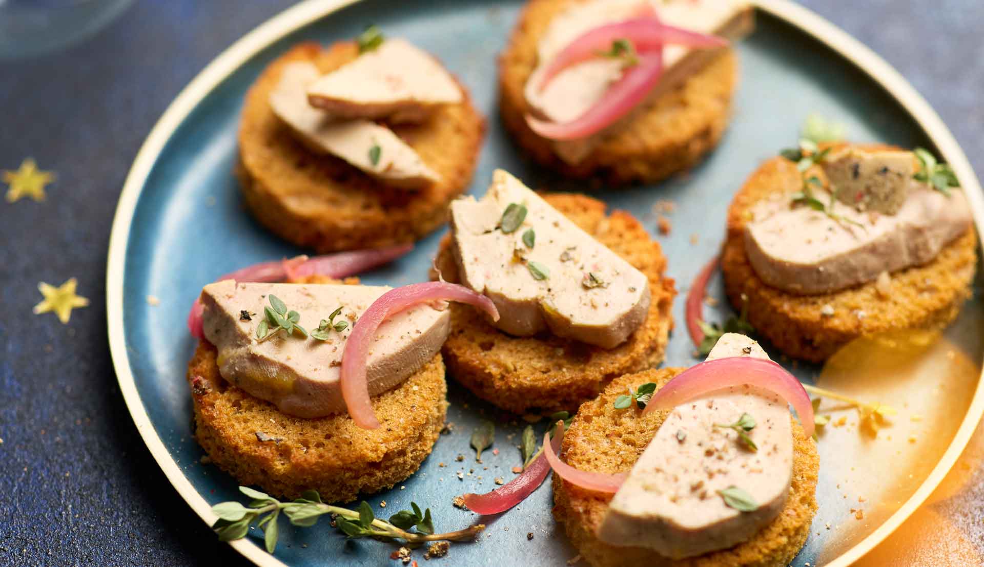 Toasts de pain d’épices, foie gras mi-cuit et pickles